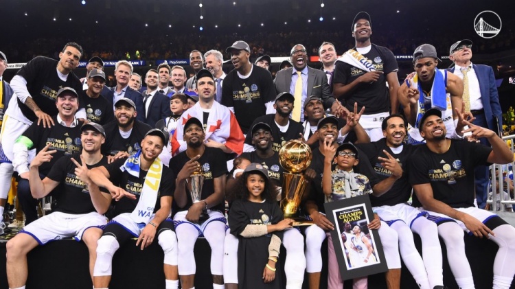 2016年总决赛遭骑士逆转后,勇士签下了杜兰特作为回应。简而言之,这个决定效果显著。在67胜15负的常规赛中,勇士的进攻效率、有效命中率、真实命中率、助攻、盖帽和抢断全部领跑联盟,防守效率也仅次于61胜的马刺。最令人震撼的是,勇士先后横扫开拓者与爵士,又在莱昂纳德受伤后轻松横扫马刺。尽管总决赛第四场被骑士扳回一城,但他们距离季后赛全胜仅差一场。杜兰特、库里和入选最佳防守阵容的追梦格林,三人同时入选最佳阵容,铸就了这支历史级豪强。